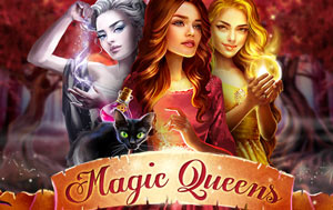 The focus of the game is on the three magic queens; a blonde-haired beauty in a golden dress, a silver-haired siren in a white dress, and an auburn-haired stunner in a red dress. These symbols are the expanding Wilds, and give a x3 multiplier. The Wilds will replace all symbols except for the Scatter, and only one Wild or Scatter can appear on the middle three reels at any one time. The Scatter symbol is the pretty tiara. As far as other symbols go, the Magic Queens reels feature a black cat, a crystal ball, a ruby adorned book of spells, a bottle of pink coloured potion, ‘A’, ‘K’, ‘10’, ‘Q’, and ‘J’. All are rendered with the same bright, glittery, Disneyesque style.